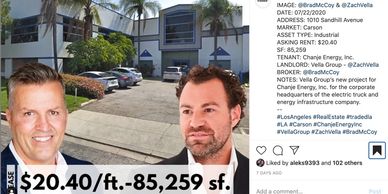 Lease to Chanje Energy, Inc. for 85,259 SF in Carson, CA for $1.70/SF/NNN ($20.40/Yr) with Vella Group.